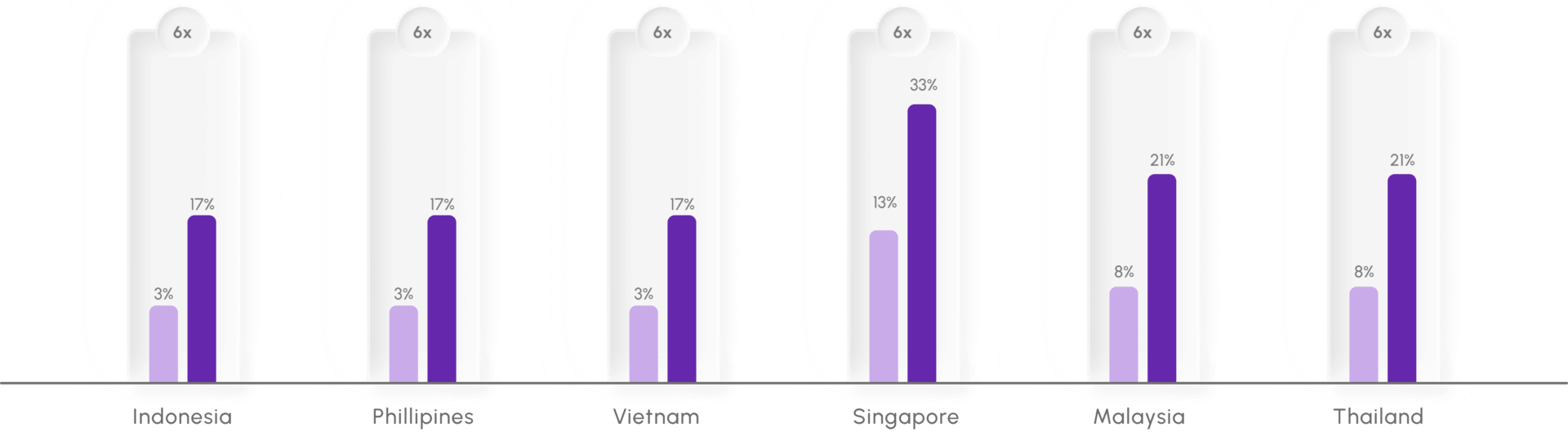 SEA e-commerce GMV has grown to $120Bn in 2021, and expected to continue growing at a 18% CAGR to ~$230Bn by 2025.
