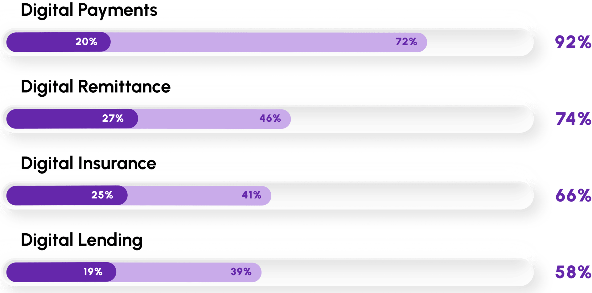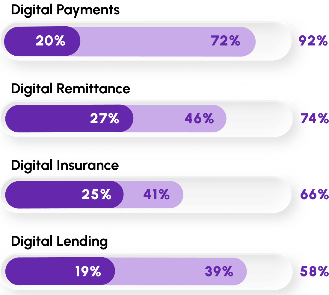 % of digital merchants likely to increase or maintain usage of digital financial services in the next 1 - 2 years
